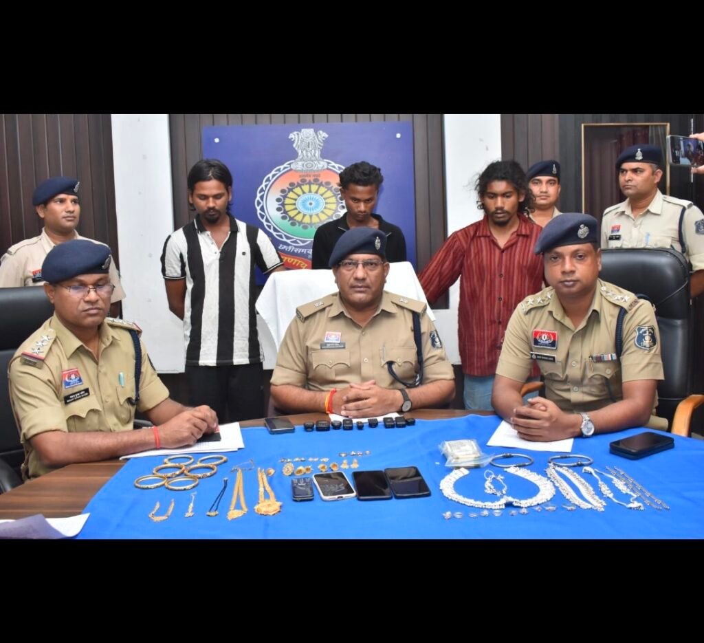 पाटन। अमलेश्वर थाना पुलिस ने सूने मकान में हुई चोरी की बड़ी वारदात का खुलासा करते हुए 3 आरोपियों को गिरफ्तार किया है। पुलिस ने आरोपियों के कब्जे से सोना-चांदी के जेवरात, नगदी, मोबाइल फोन सहित कुल 8 लाख 22 हजार 480 रुपये मूल्य की संपत्ति बरामद की है।