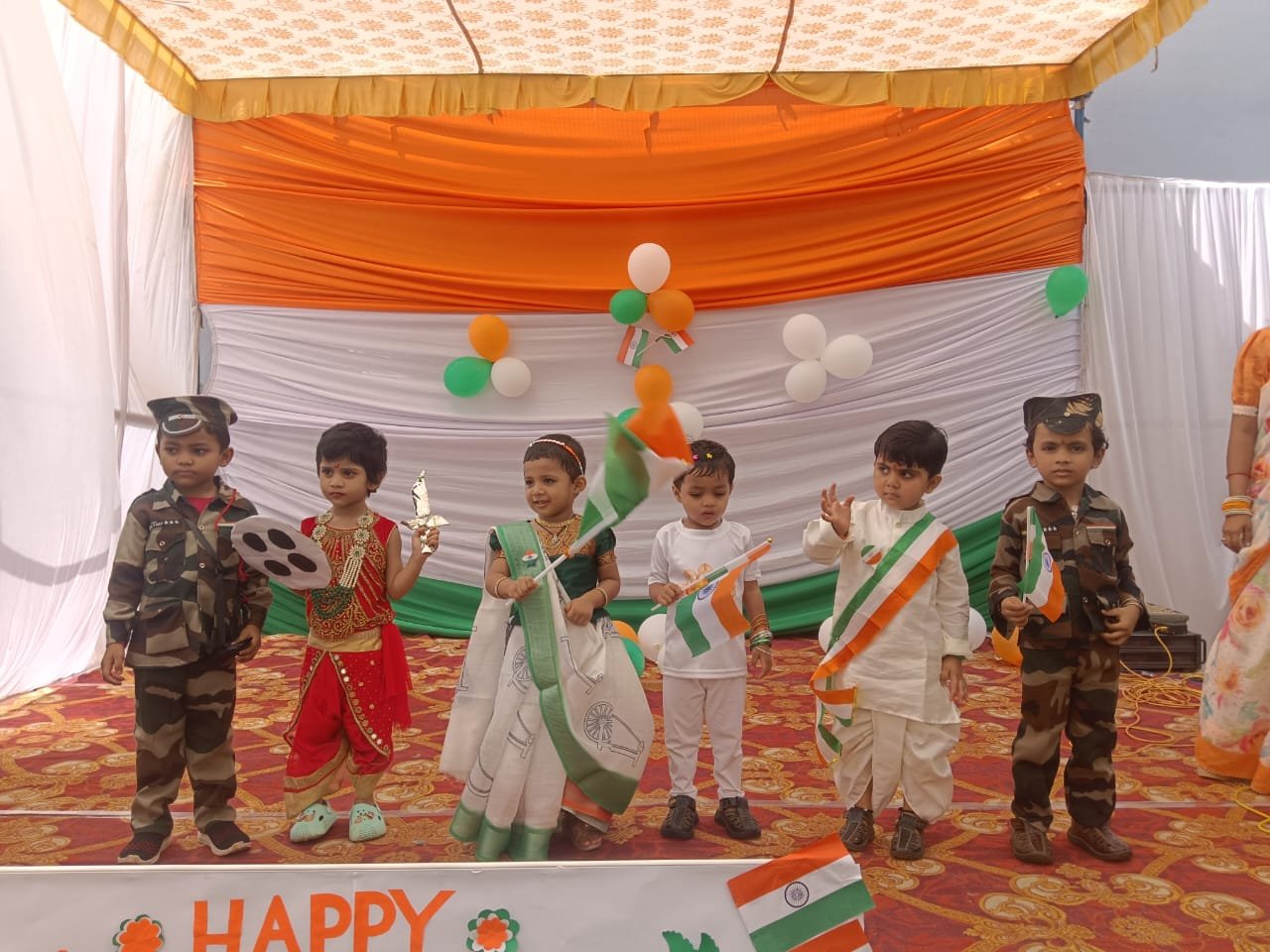 कार्यक्रम के दौरान नन्हे-मुन्ने बच्चों ने मनमोहक प्रस्तुतियां दीं। रंग-बिरंगे परिधानों में सजे बच्चों ने देशभक्ति गीत, नृत्य और फैंसी ड्रेस प्रतियोगिता से सभी को मंत्रमुग्ध कर दिया। बच्चों की मासूमियत और उत्साह ने समारोह को यादगार बना दिया।