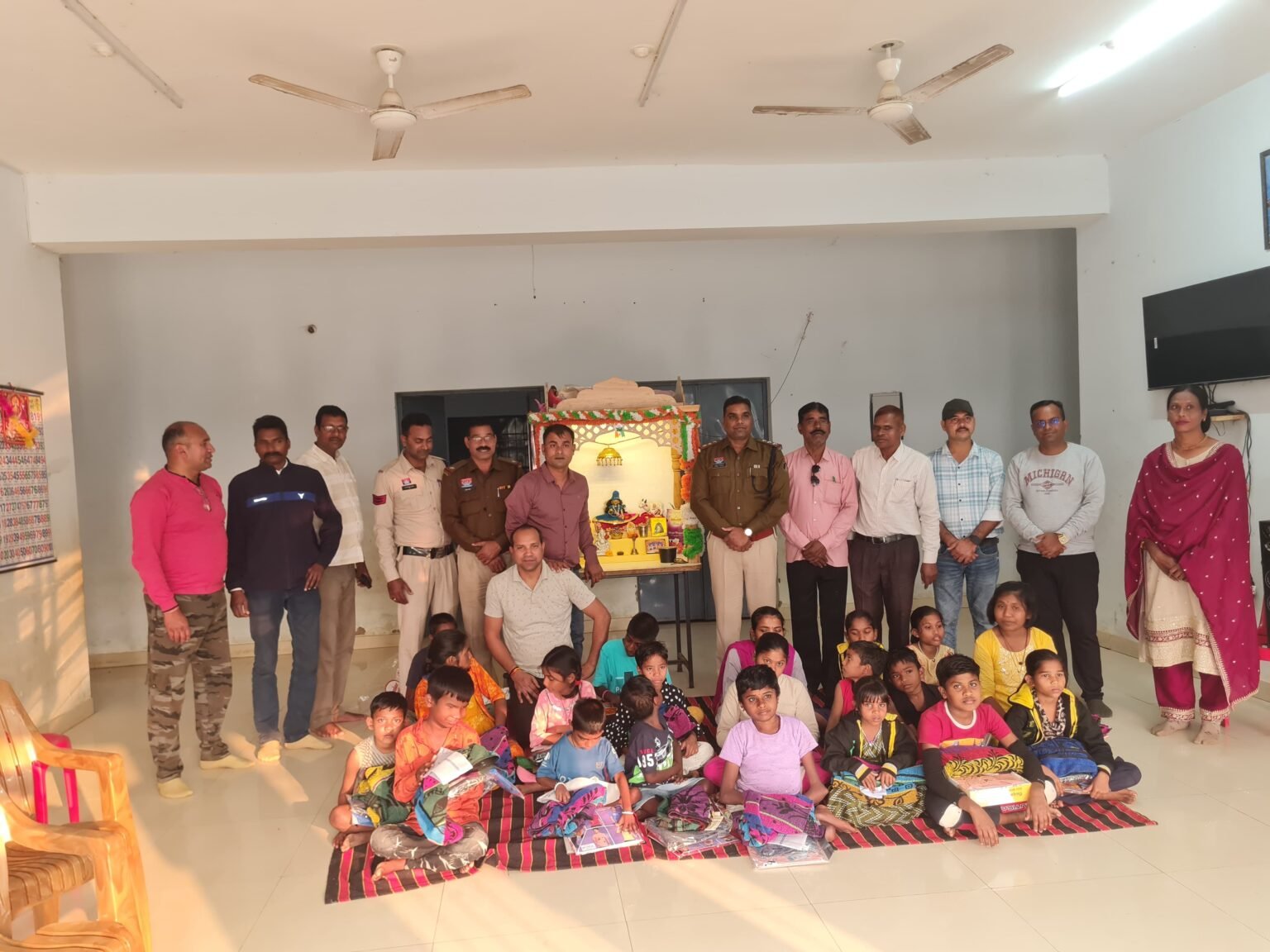 इस अवसर पर थाना प्रभारी श्री दीपेश जायसवाल ने संस्था में अध्ययनरत दिव्यांग बच्चों से आत्मीयता के साथ मुलाकात कर उनका कुशलक्षेम जाना तथा उनके उज्ज्वल भविष्य की कामना की। पुलिस स्टाफ द्वारा बच्चों को नए वस्त्र एवं गर्म कपड़े भी प्रदान किए गए। नए कपड़े पाकर बच्चों के चेहरे खुशी से खिल उठे और पूरे परिसर में उल्लास का वातावरण बन गया।