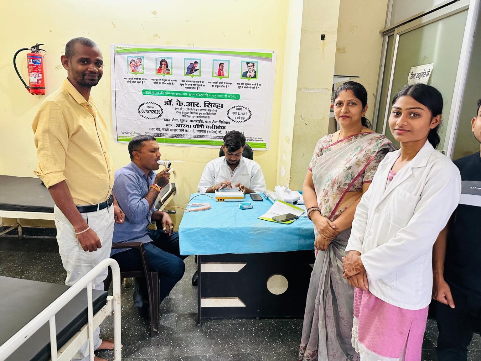 @छत्तीसगढ़ लोकदर्शन, नवापारा राजिम। नवापारा नगर के सदर रोड स्थित आस्था पाली क्लिनिक में गत दिनों स्वास्थ्य शिविर का आयोजन किया गया। शिविर में विशेषज्ञों द्वारा श्वसन एवं फेफड़ों की जांच की गई। जिसमें मशीन के माध्यम से फेफड़ों की मात्रा, क्षमता एवं सास लेने की मापी गई । आपको बता दे कि वर्तमान परिवेश में लोग श्वास एवं श्वसन संबंधी रोग से ग्रसित है। प्रदूषण, धुंआ एवं सिगरेट आदि के धुएं से भी श्वसन संबंधी रोगियों को संख्या में इजाफा हुआ है। इस संदर्भ में जांच एवं आवश्यक परामर्श के लिए जांच शिविर लगाई गई। आस्था पाली क्लिनिक के वरिष्ठ चिकित्सक डॉ के आर सिन्हा ने जानकारी में बताया कि श्वसन संबंधी जांच के लिए विशेषज्ञ की देखरेख में मशीन द्वारा जांच कर परामर्श एवं इलाज किया गया। शिविर में नगर पालिका उपाध्यक्ष भूपेंद्र सोनी, पार्षद रवि साहू एवं भारी संख्या में नगरवासियों ने जांच कराई। शिविर में डॉ के आर सिन्हा के मार्गदर्शन में टेक्निकल टीम हिरेंद्र पटेल द्वारा जांच की गई। जिसमें मेडिकल टीम के ममता साहू, तुषार साहू का विशेष सहयोग रहा।