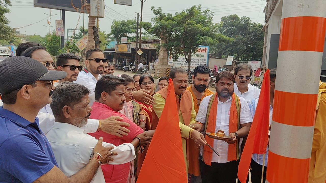 इस अवसर पर भाजपा मंडल अध्यक्ष नागेंद्र वर्मा की विशेष पहल पर नगर पालिका अध्यक्ष ओमकुमारी साहू एवं उपाध्यक्ष भूपेंद्र सोनी द्वारा ध्वज की स्थापना की गई।