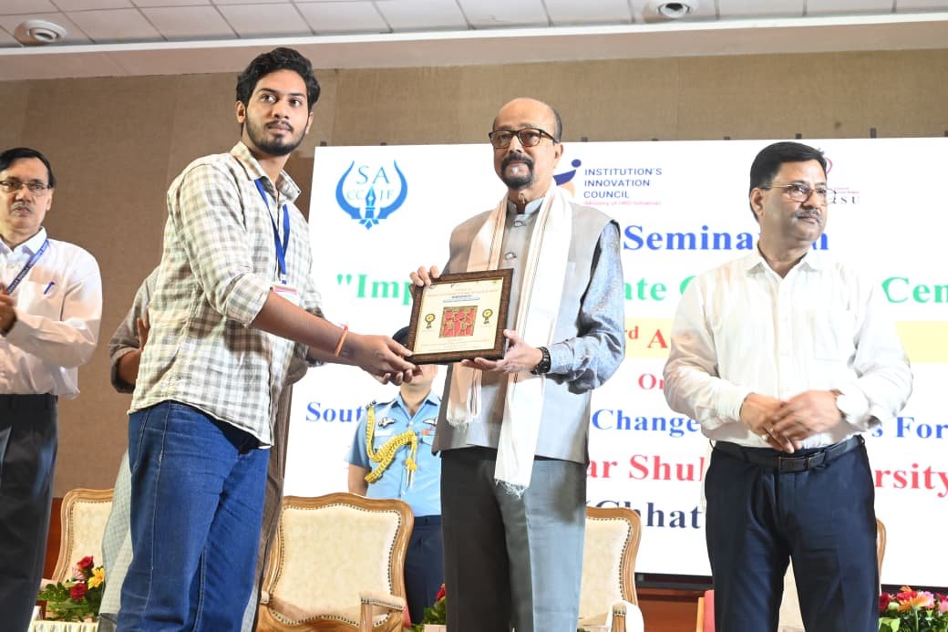 पंडित रविशंकर विश्वविद्यालय में आयोजित “इम्पैक्ट ऑफ क्लाइमेट चेंज इन सेंट्रल इंडिया” विषयक प्रतियोगिता में परम चक्रधारी ने पेंटिंग एवं निबंध लेखन में शानदार प्रदर्शन किया। इस आयोजन के मुख्य संरक्षक श्री आशीष गुप्ता, प्रेसिडेंट ऑफ द साउथ एशियन क्लाइमेट चेंज जर्नलिस्ट फोरम इन इंडिया रहे।