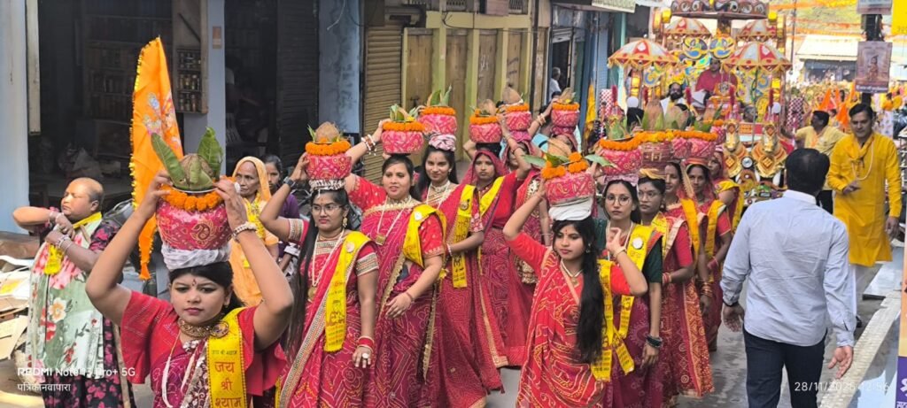 शनिवार दोपहर 12 बजे मंदिर परिसर से दिव्य कलश शोभायात्रा निकली। 5 वर्ष की नन्हीं कन्याओं से लेकर वृद्ध मातृशक्ति तक हर हाथ में कलश और हर दिल में श्रद्धा—शोभायात्रा नगर की संस्कृति का विराट दर्शन बनी। नेहरू घाट, सदर बाजार, सुभाष चौक, गंज रोड होते हुए यात्रा निकली तो पूरा मार्ग जय-जयकार से गूंज उठा। 7 घोड़ों से सुसज्जित धर्मध्वजा सबके आकर्षण का केंद्र रही।