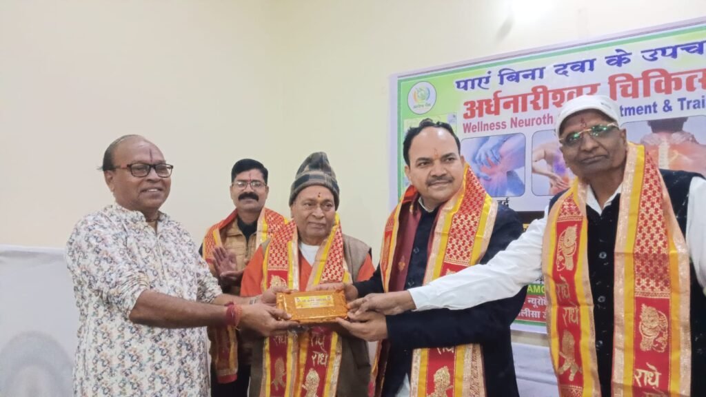 दिल्ली से आए राष्ट्रपति कार्यालय के पूर्व सलाहकार एवं आरोग्य पीठ के संस्थापक आचार्य डॉ. रामगोपाल दीक्षित ने बताया कि अर्धनारीश्वर चिकित्सा शरीर की नसों, मांसपेशियों और मस्तिष्क के बीच संतुलन स्थापित कर रोग की जड़ पर काम करती है। उन्होंने कहा कि यह चिकित्सा पद्धति बिना दवा और बिना सर्जरी माइग्रेन, शुगर, कमर दर्द, कंधा दर्द और घुटनों की समस्या में प्रभावी परिणाम देती है।