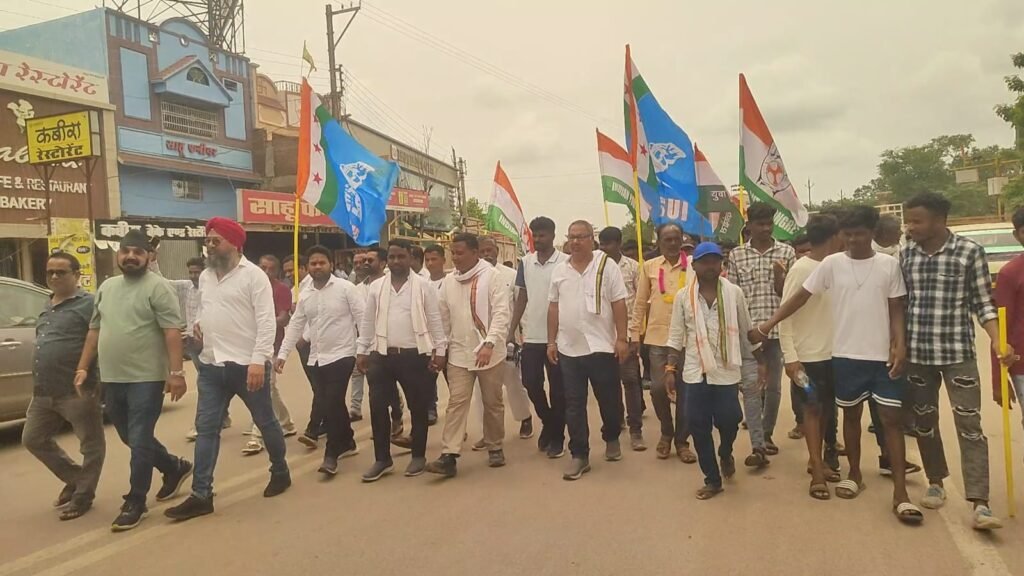 - छत्तीसगढ़ में कांग्रेस की 140 किलोमीटर लंबी जन न्याय यात्रा: बढ़ते अपराध, अवैध खनन और शिक्षा संकट के खिलाफ जोरदार प्रदर्शन